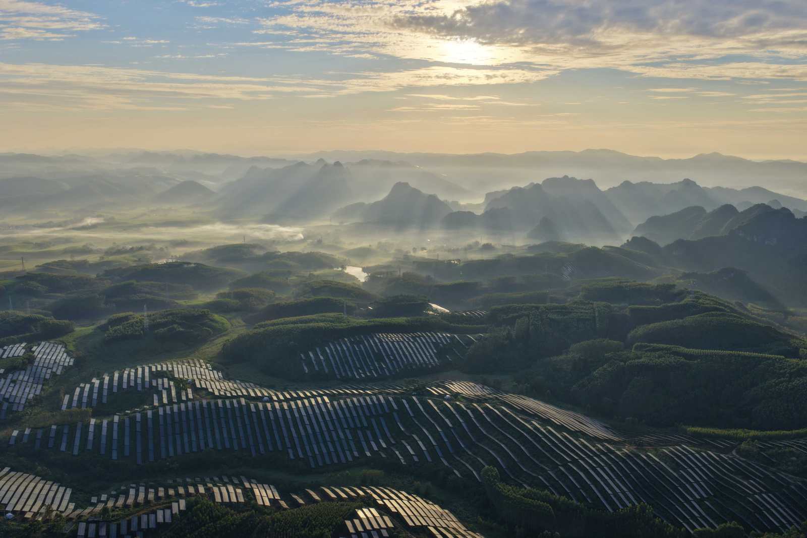•Project Background:The project is located in Guangxi Province, set within a landscape surrounded by green hills. Antaisolar provided the complete fixed mounting system for the construction of a 200MW agri-PV power plant. As a demonstration project integrating regional energy transition and modern agriculture, it actively responds to China’s “dual carbon” goals and explores an innovative development model in southern humid and hilly regions—realizing “power generation above, cultivation below” through coordinated green development.