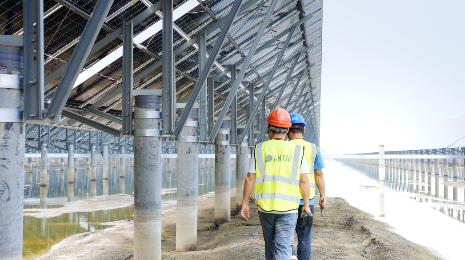 •Project Background:This case focuses on two large-scale fishery–PV projects developed by Antaisolar concurrently in Shandong province. Both projects are located in coastal tidal-flat areas, with a combined installed capacity of 400MW and a total land area of approximately 8,247 mu. As landmark initiatives supporting Shandong Province’s strategy for three-dimensional marine spatial development, the projects integrate green energy generation with modern aquaculture practices. Through large-scale deployment, the investors aim to explore and implement an innovative industrial model of “power generation above water and aquaculture below,” enabling efficient utilization of marine resources while enhancing ecological value.